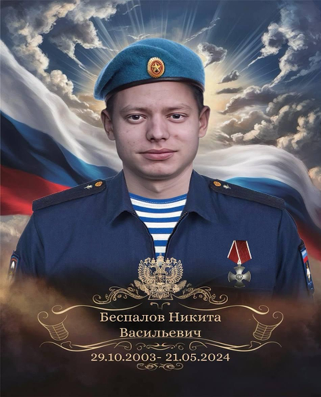 БЕСПАЛОВ Никита Васильевич (29.10.2003 – 21.05.20024) гвардии рядовой, 108 гвардейский десантно-штурмовой Кубанский казачий ордена Красной Звезды полк (в/ч 42091 МОРФ) г. Новороссийск, участник специальной военной операции. Позывной «Малой» |