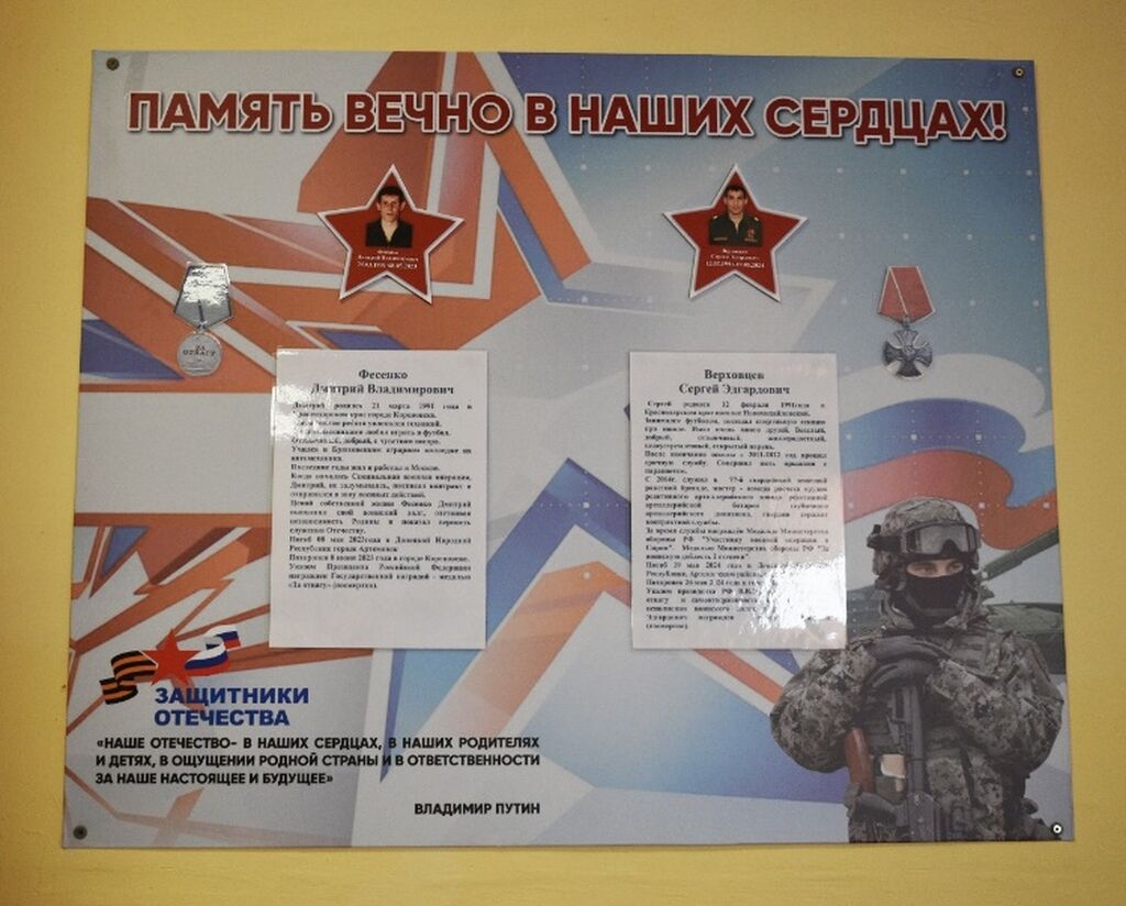 Фесенко Дмитрий Владимирович погиб, защищая страну от фашизма, в борьбе за свободное будущее подрастающего поколения России. Наша обязанность – сохранить память о герое и пронести её через года.